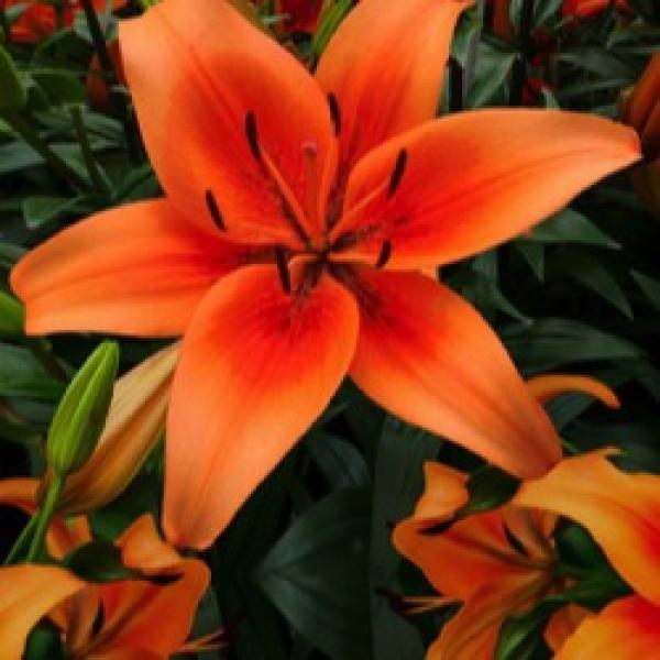 Bright tangerine orange flowers with dark spots.
