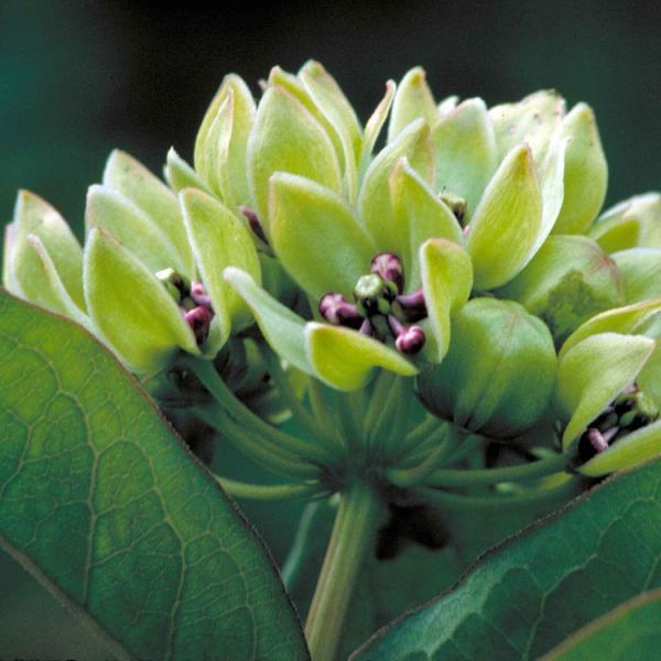 Larval host to monarch butterflies and of special value to native bees, bumblebees, and honey bees per the Xerces Society. Spreads lightly by seed and rhizome. Long taproot makes it difficult to transplant, but tolerant of drought. Deer-resistant. Also known as spider milkweed or green antelopehorn. See more Milkweed in Native Perennials.