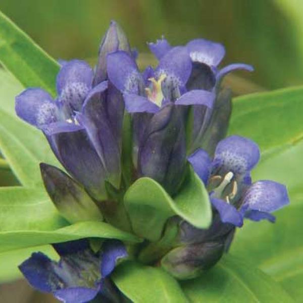 Attractive leafy stalks topped by groups of 1" deep-blue flowers. Appreciates rich soil, good drainage, and some light shade in hot summers.