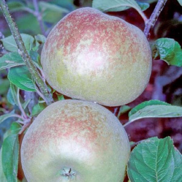 German green russet apple, sharp but sweet, with fine-grained white flesh. Good for cooking and eating fresh. Keeps for three to four months. Mid-season. Bud 9 rootstock.
